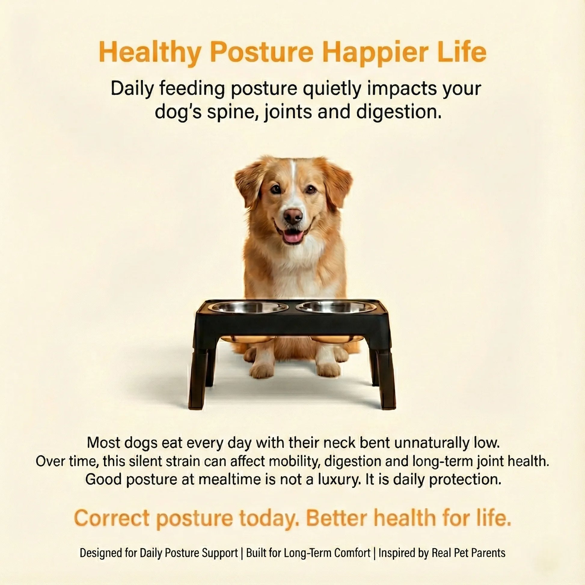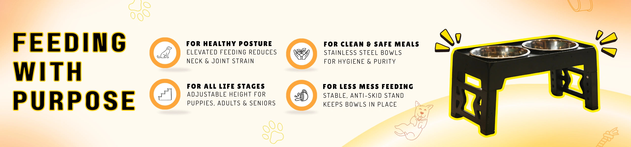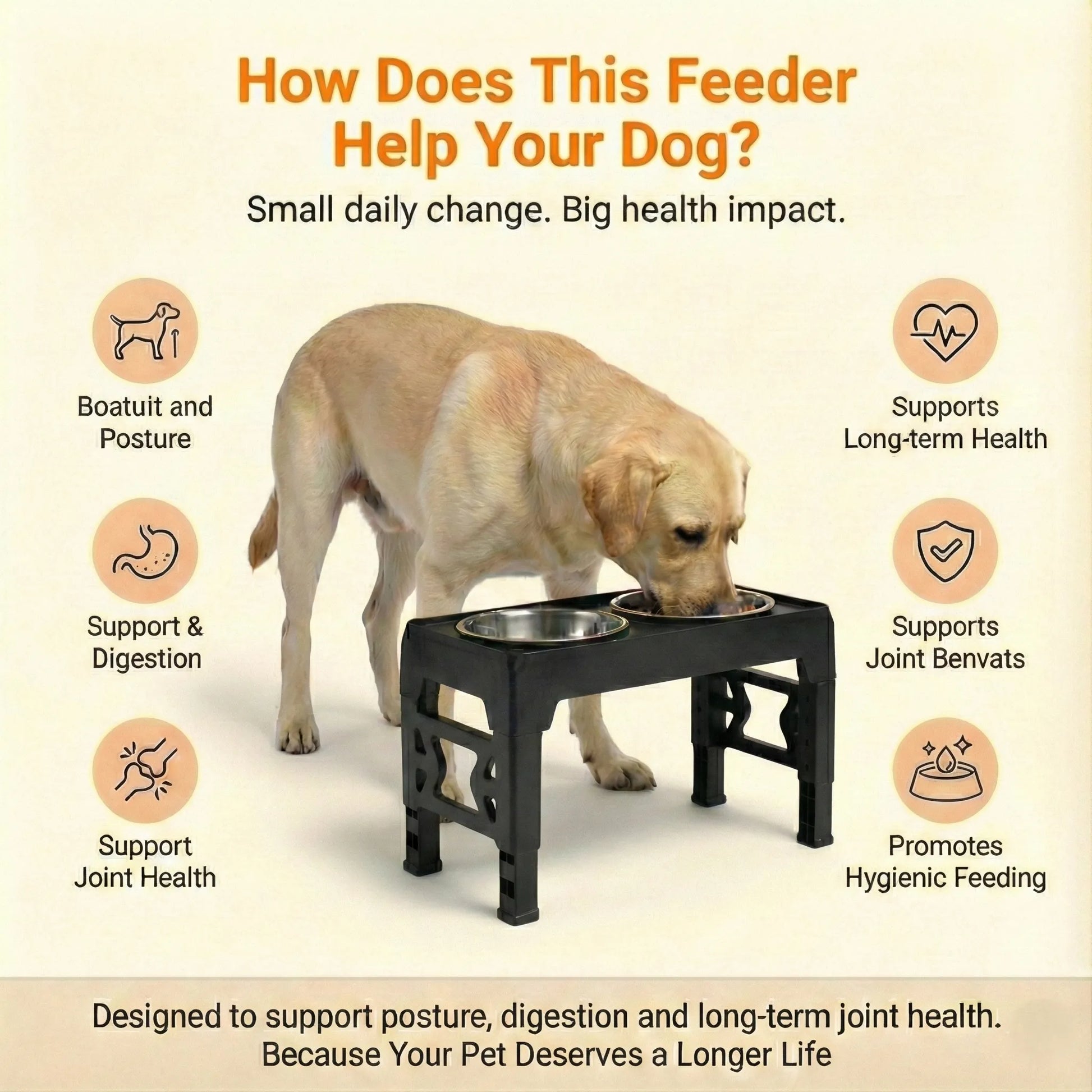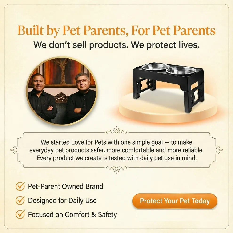 Adjustable Dog Stand Feeder Provide the ultimate comfort for your dog at every stage of its life. This adjustable elevated feeder is the perfect all-in-one solution for growing puppies, adult dogs, and senior companions. By raising the food and water bowls to a comfortable height, you can help improve your dog's posture, reduce strain on their neck and joints, and promote healthier digestion.